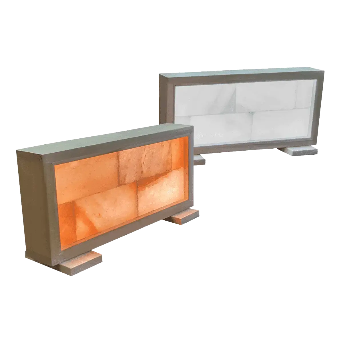Discover the newest addition to our collection: the 20″ x 10″ Himalayan Salt Wall with LED. This compact LED salt wall makes an exciting visual statement while offering the benefits of air purifying salt wall decor, all in a convenient plug-and-play salt wall art design. Measuring 20″W x 10″H, it’s available in two stunning versions—our classic natural Himalayan salt bricks (showcasing beautiful orange, red, and pink hues) or the rare white Himalayan salt bricks—effortlessly blending aesthetic appeal with profound wellness benefits.