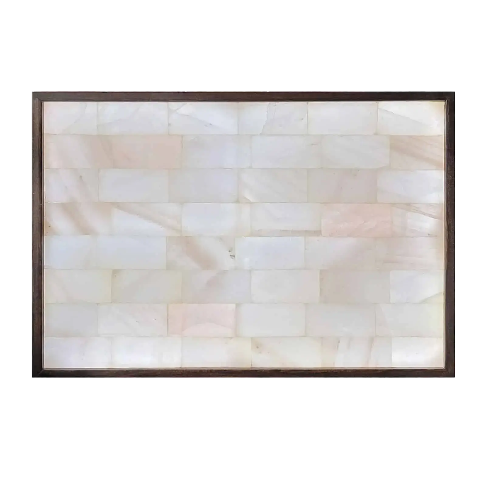 Discover the superior wellness benefits of our therapeutic white salt wall. Each panel is meticulously hand-assembled from the finest rare White Himalayan Salt Bricks, containing 45-55 bricks. These natural ion producers actively clean the air of dust and pollen, projecting a profound sense of peace and tranquility. When warmed by the backlight, these heavier bricks generate more natural ions – the same beneficial ions found near thunderstorms, crashing waves, and waterfalls, as promoted by Dr. Oz for their health advantages. Our proprietary construction ensures both the front and back of the bricks have unobstructed air exposure, maximizing natural ion exchange and delivering air purifying salt panel benefits for up to 1500 square feet. Experience the serene glow of this negative ion white salt display and embrace a new level of well-being.