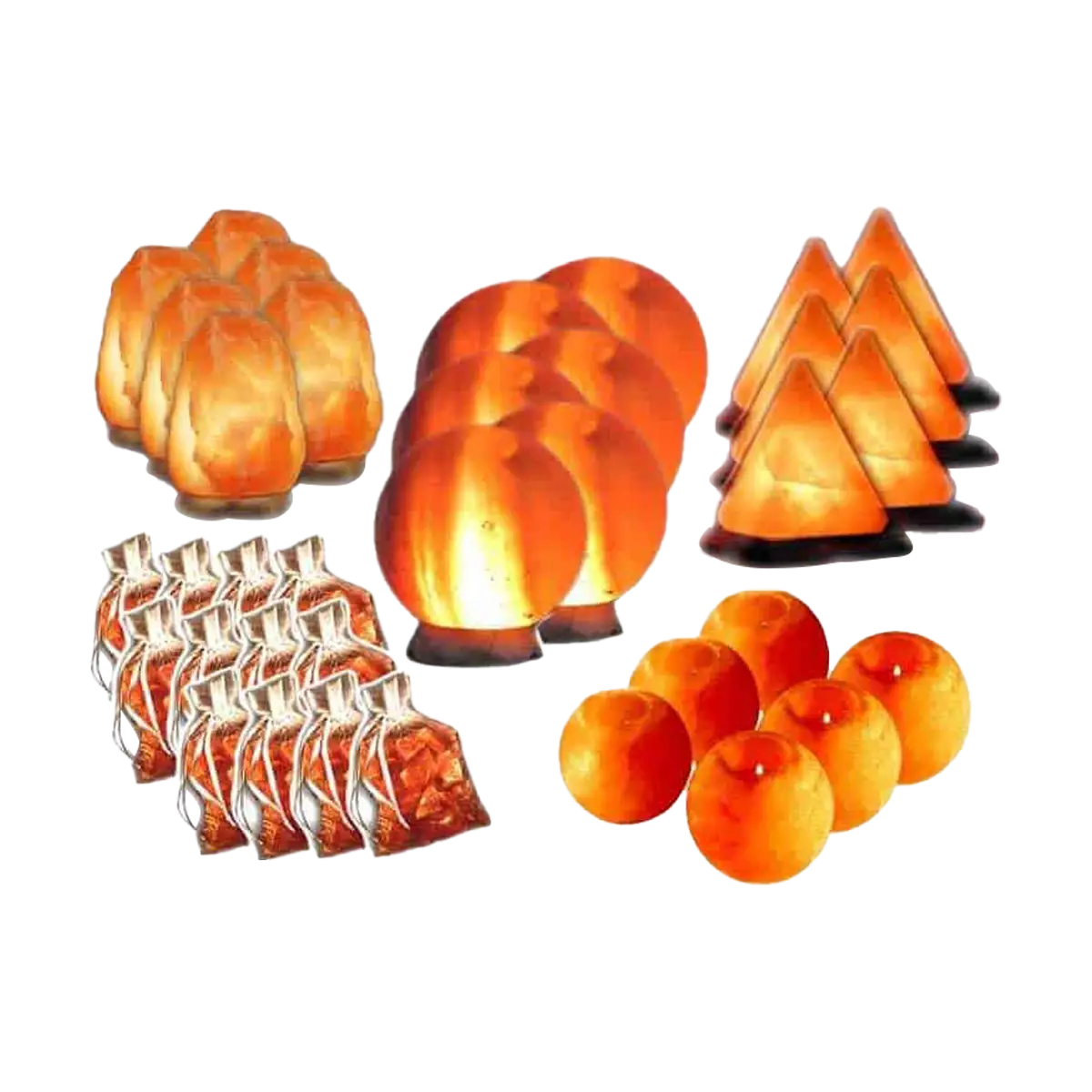 Our Everest Salt Lamp Value Pack is our largest value pack and offers the greatest savings compared to individual prices. Carefully curated, this multi-item value pack collection of Himalayan salt lamps includes 6 of our most popular “Quasar” medium salt lamps, 6 spheres (globe) salt lamps, 6 pyramid salt lamps, 12 Himalayan baths salt tea bags, and 6 Himalayan salt tea light candle holders.