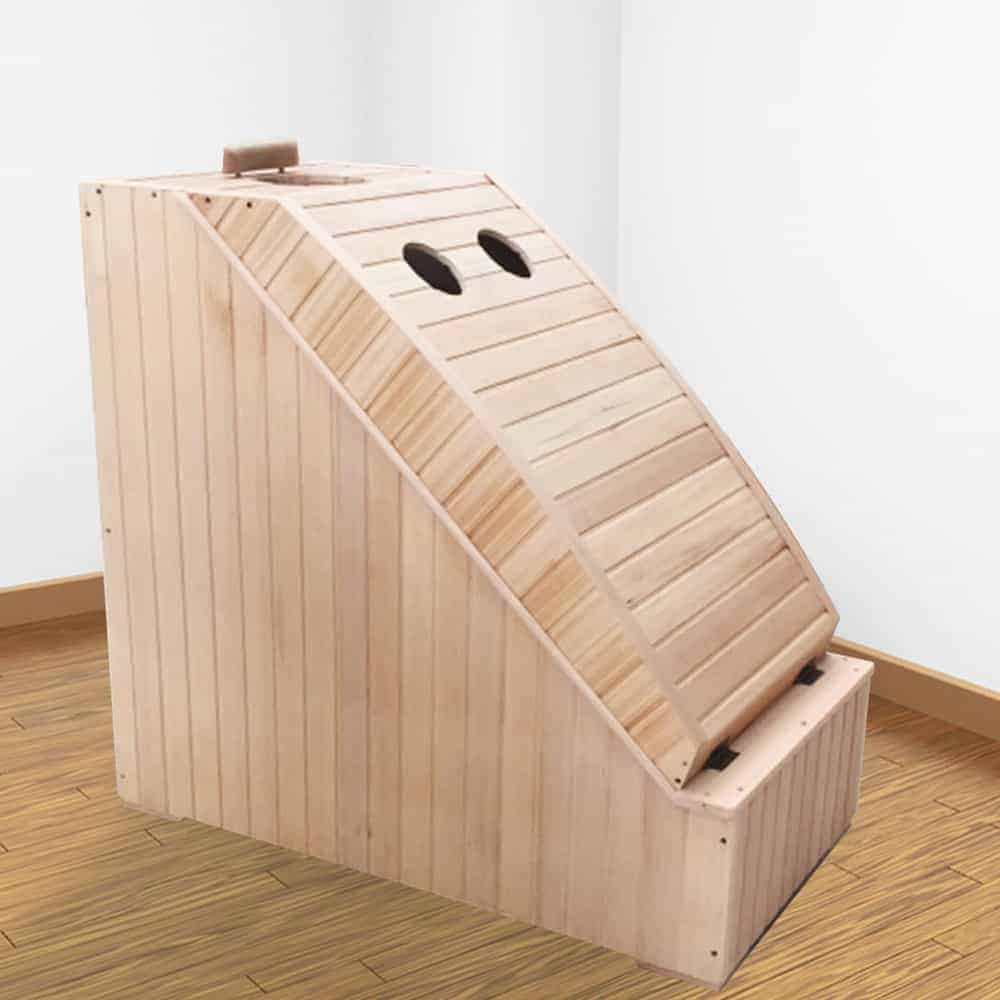 Traditional saunas force you to disconnect, often leading to boredom. Plus, the heat and moisture are detrimental to electronics. Our unique hands-free, head-up design solves both problems. Your head and hands remain outside the main heat cabin, keeping you comfortable and your phone, tablet, or book safe and accessible. Finally, you can multitask – relax, recover, and stay productive or entertained simultaneously.