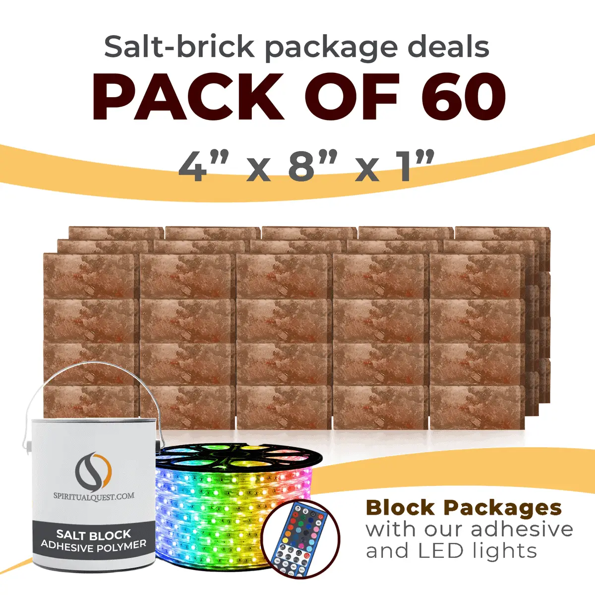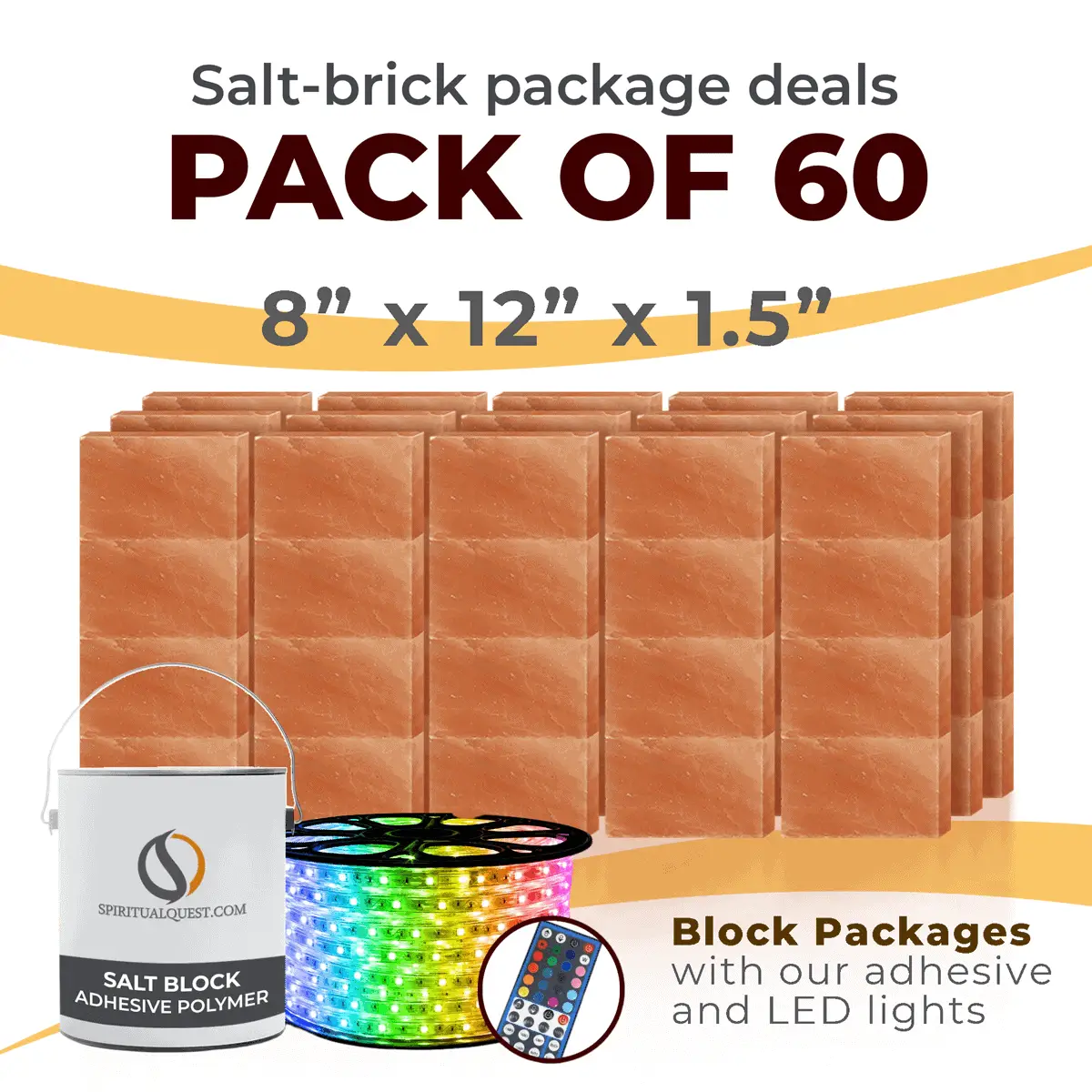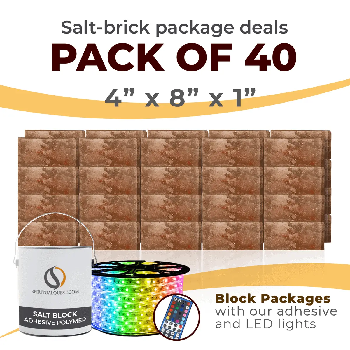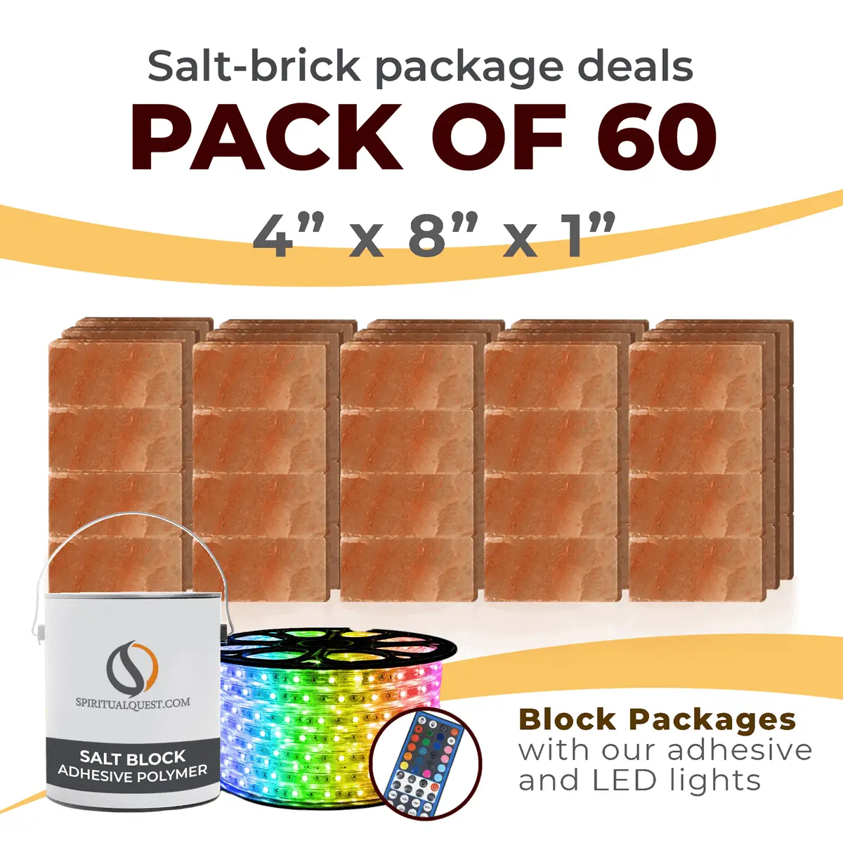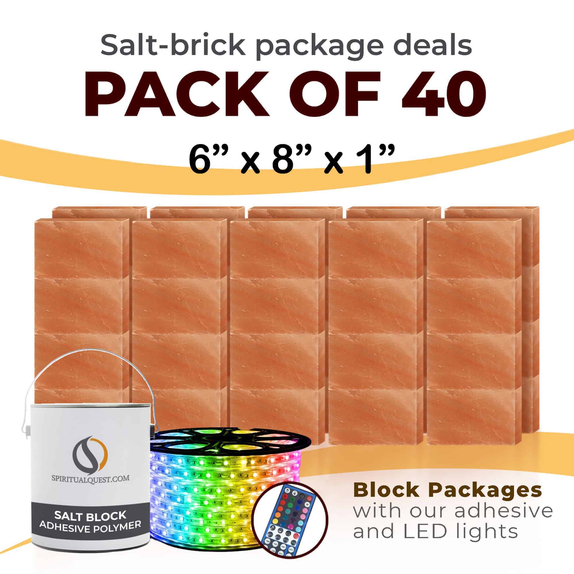 4″ x 8″ x 1″ – 6″ x 8″ x 1″ – 8″ x 12″ x 1.5″ Salt Bricks plus Adhesive and LED Lights