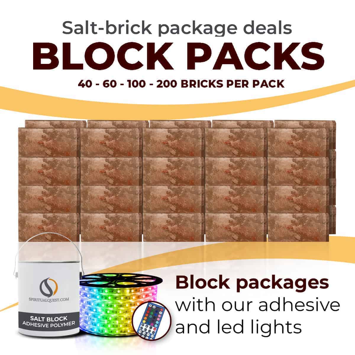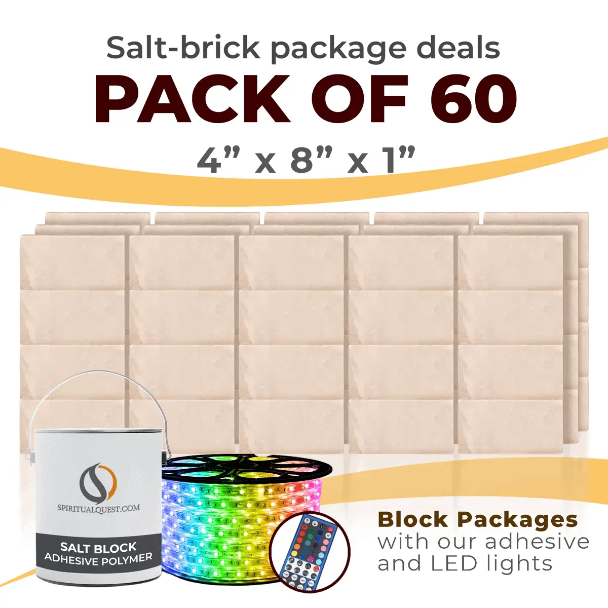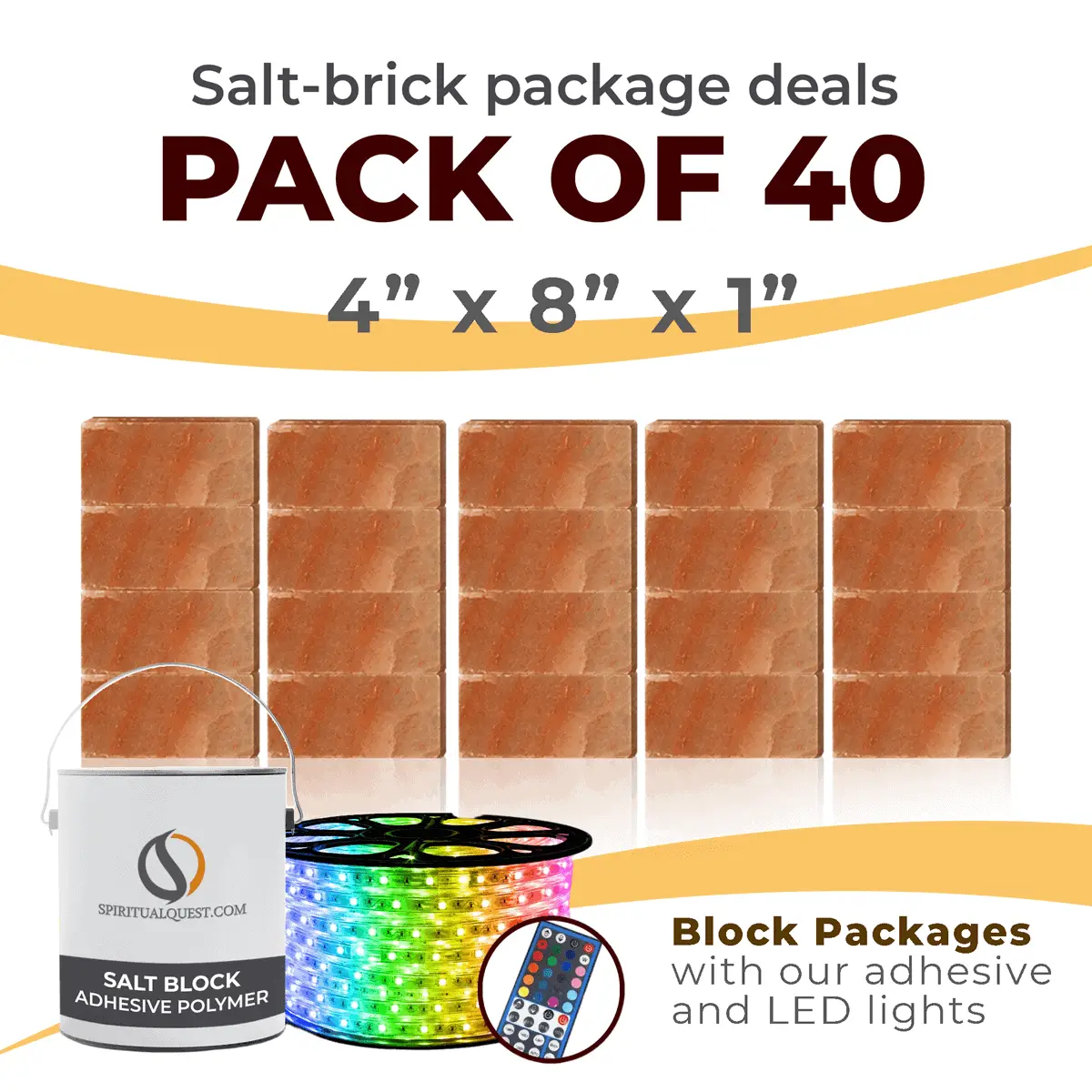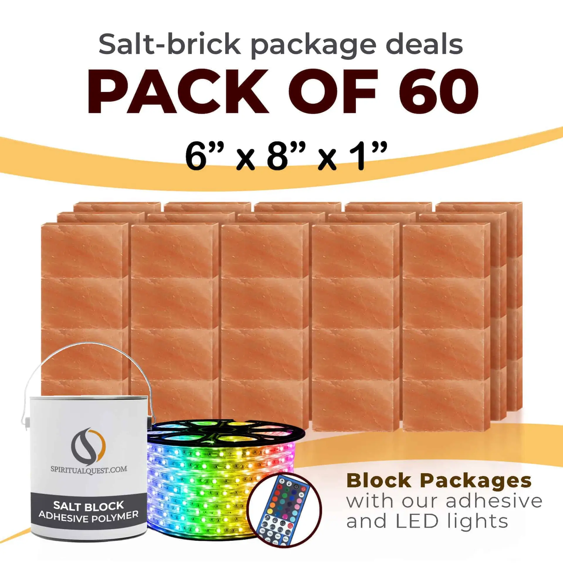 4″ x 8″ x 1″ – 6″ x 8″ x 1″ – 8″ x 12″ x 1.5″ Salt Bricks plus Adhesive and LED Lights
