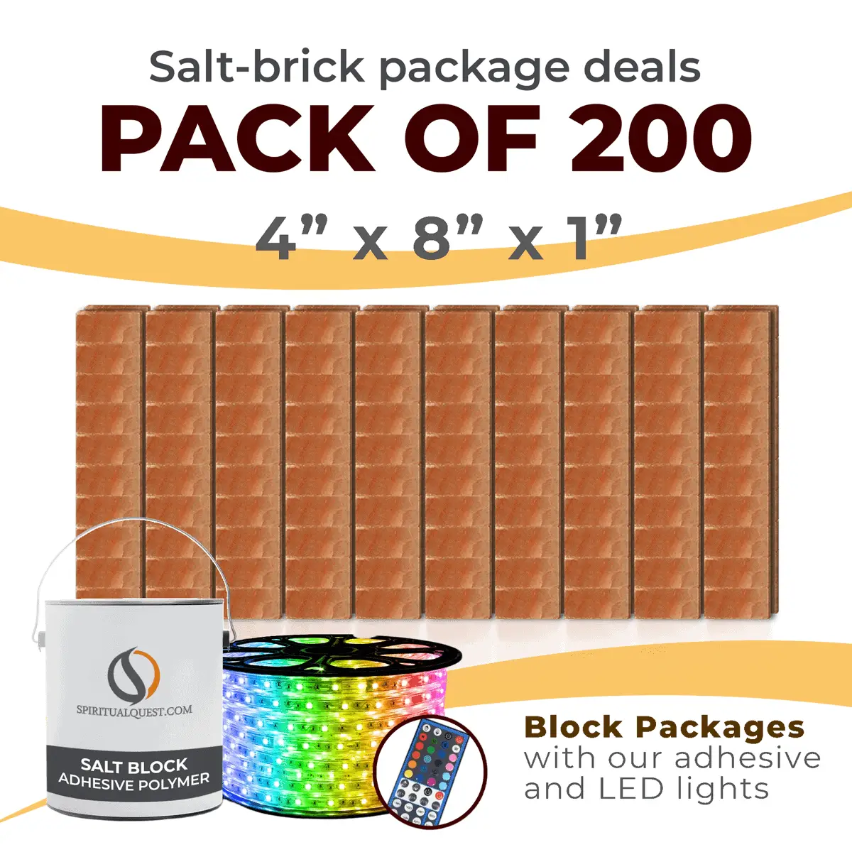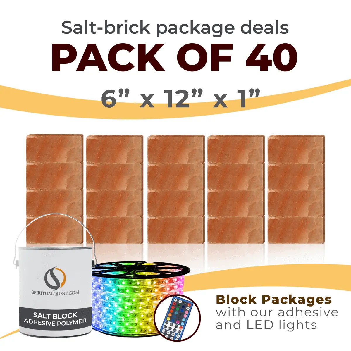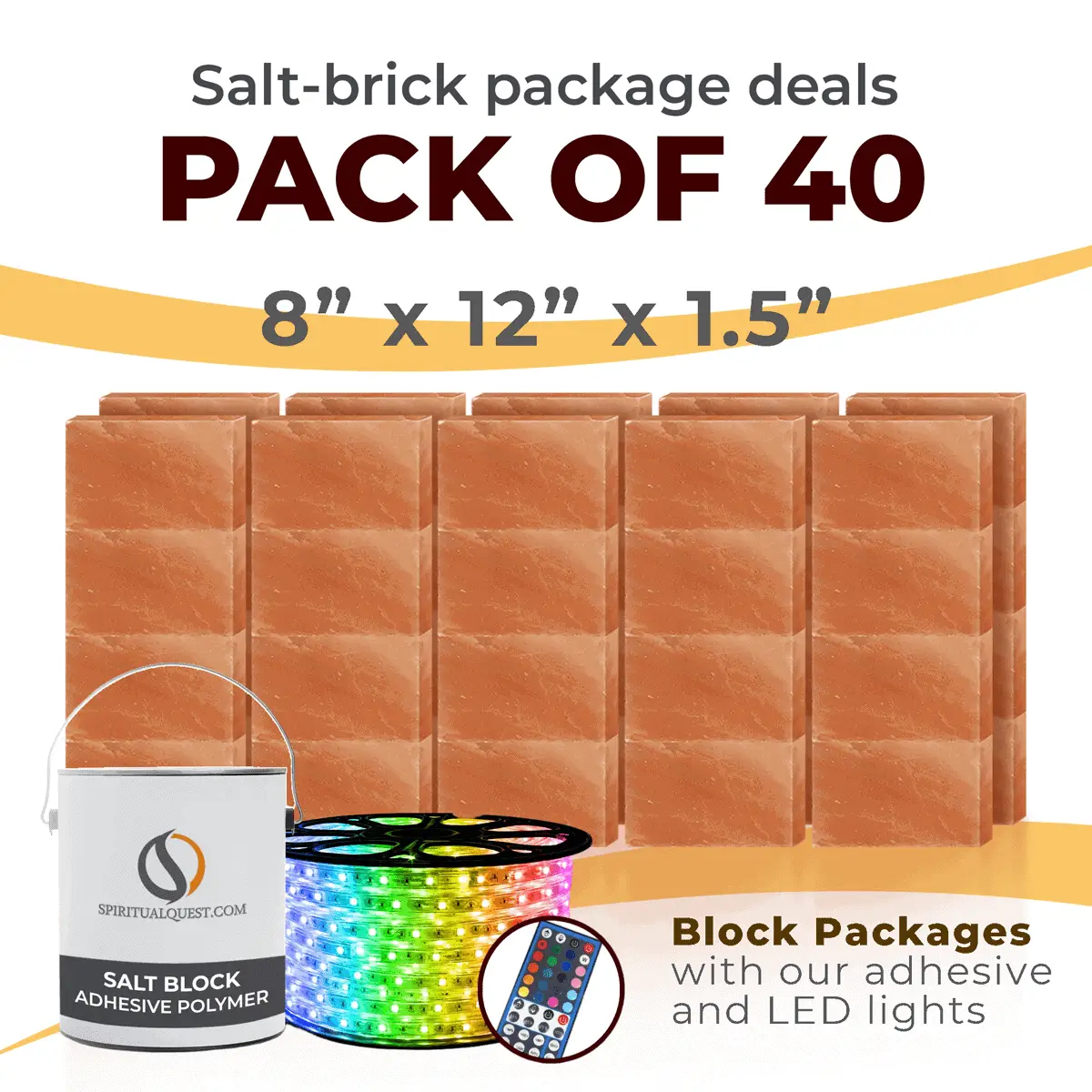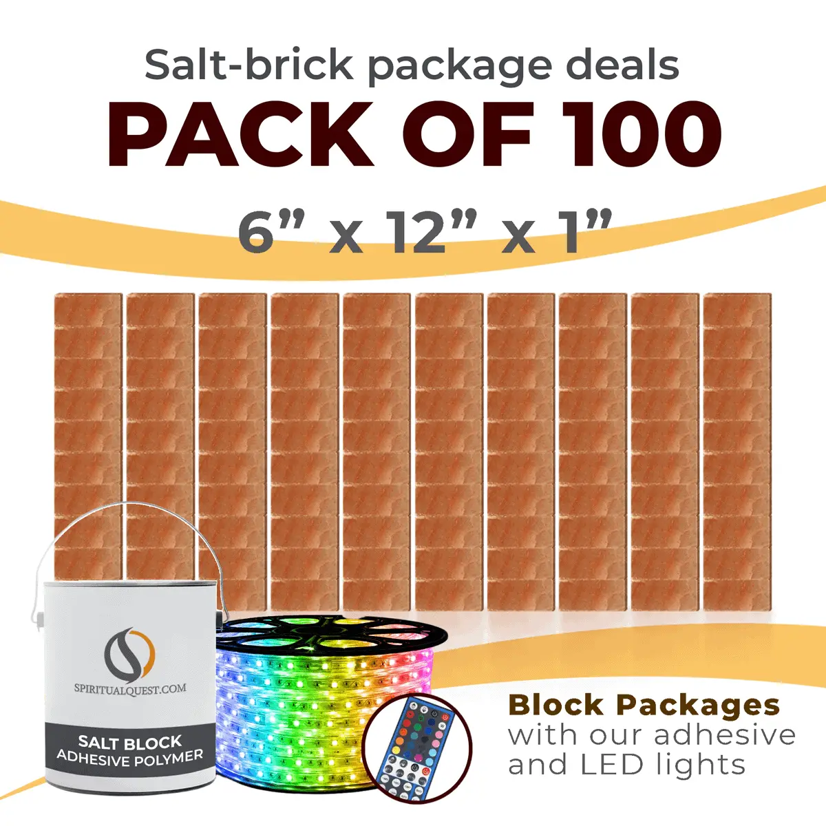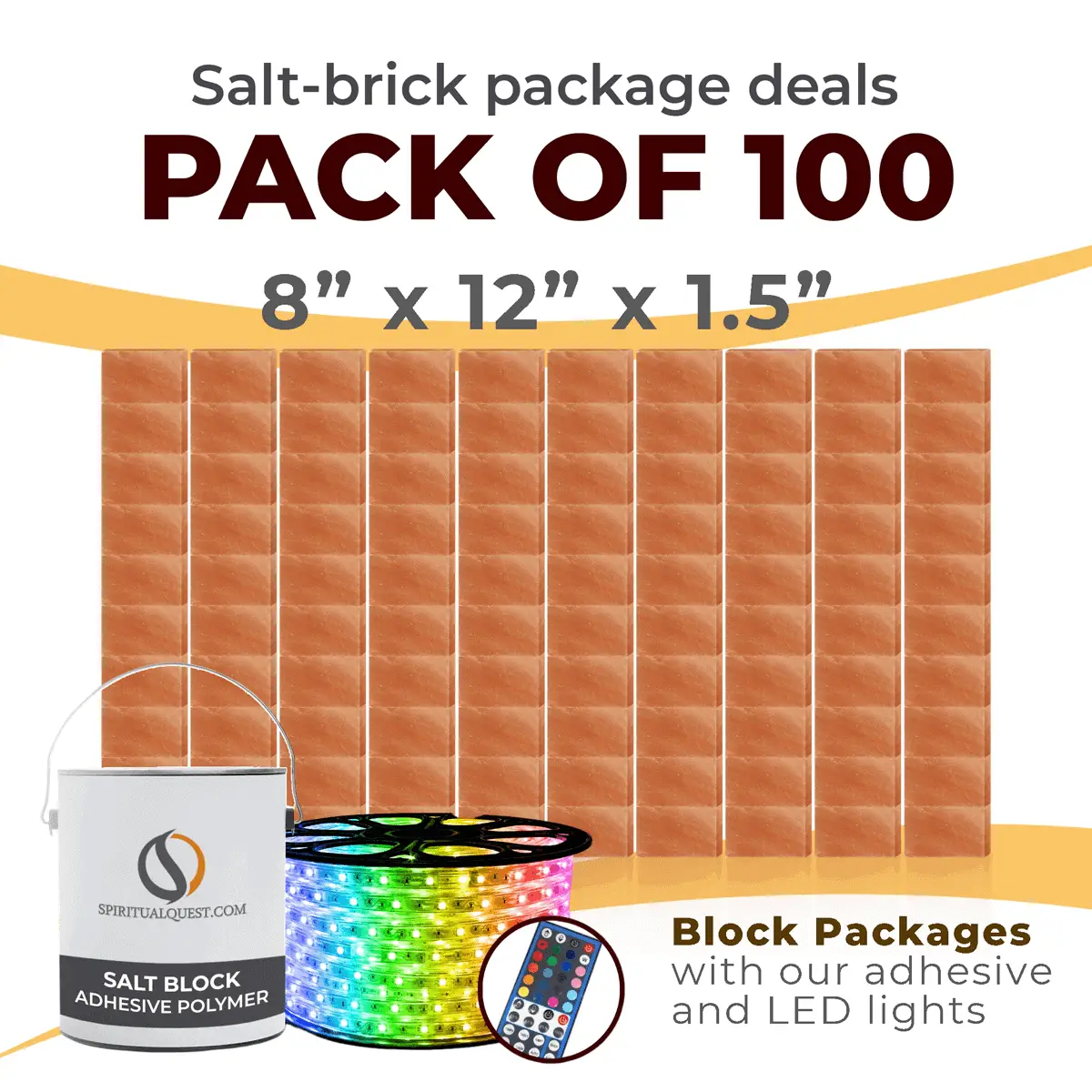 4″ x 8″ x 1″ – 6″ x 8″ x 1″ – 8″ x 12″ x 1.5″ Salt Bricks plus Adhesive and LED Lights