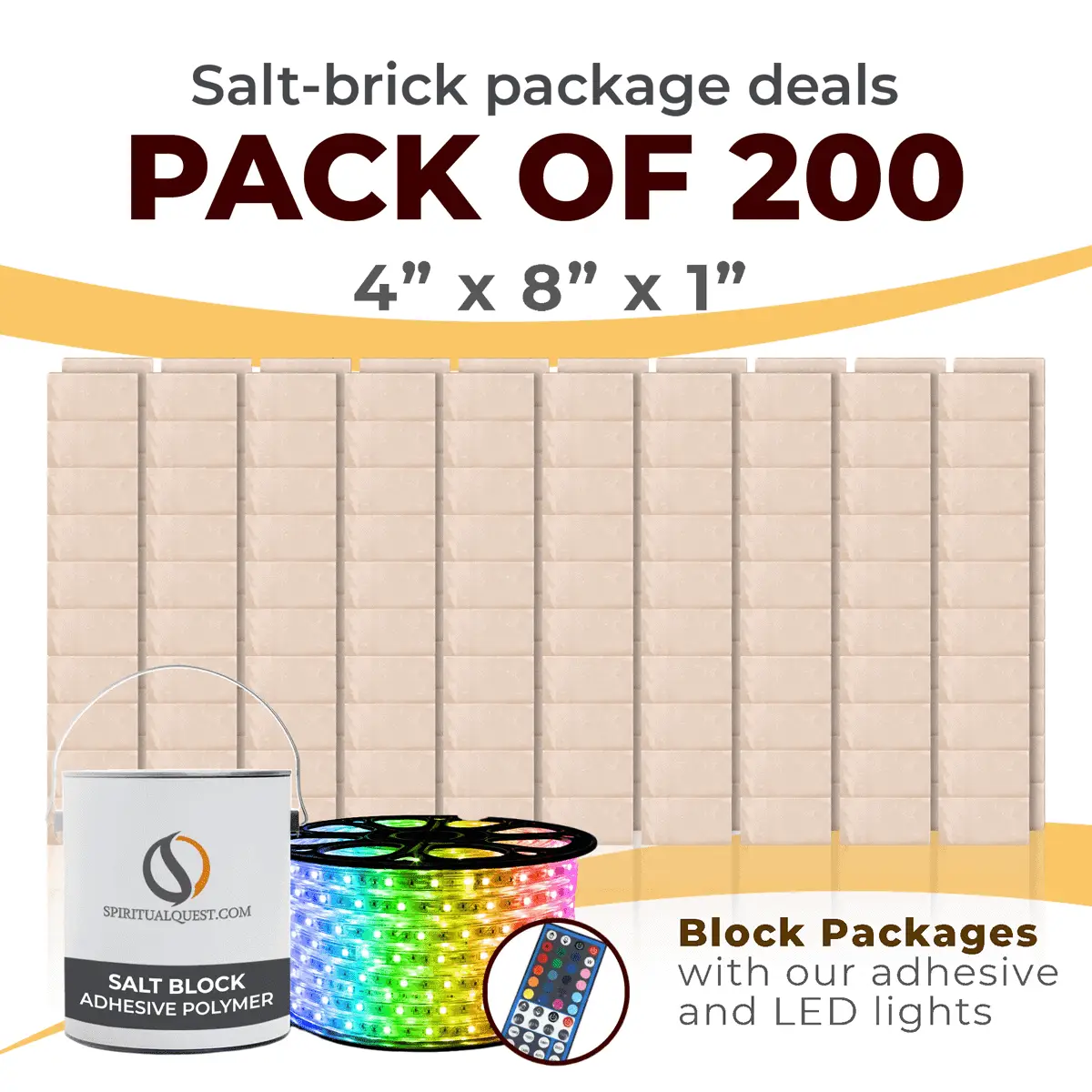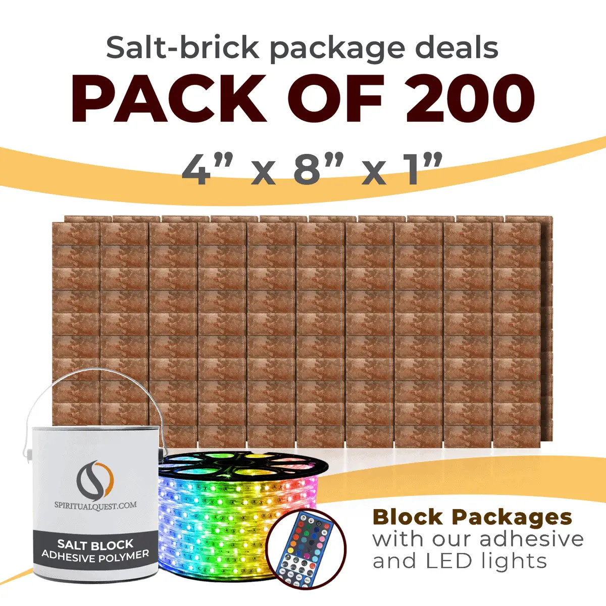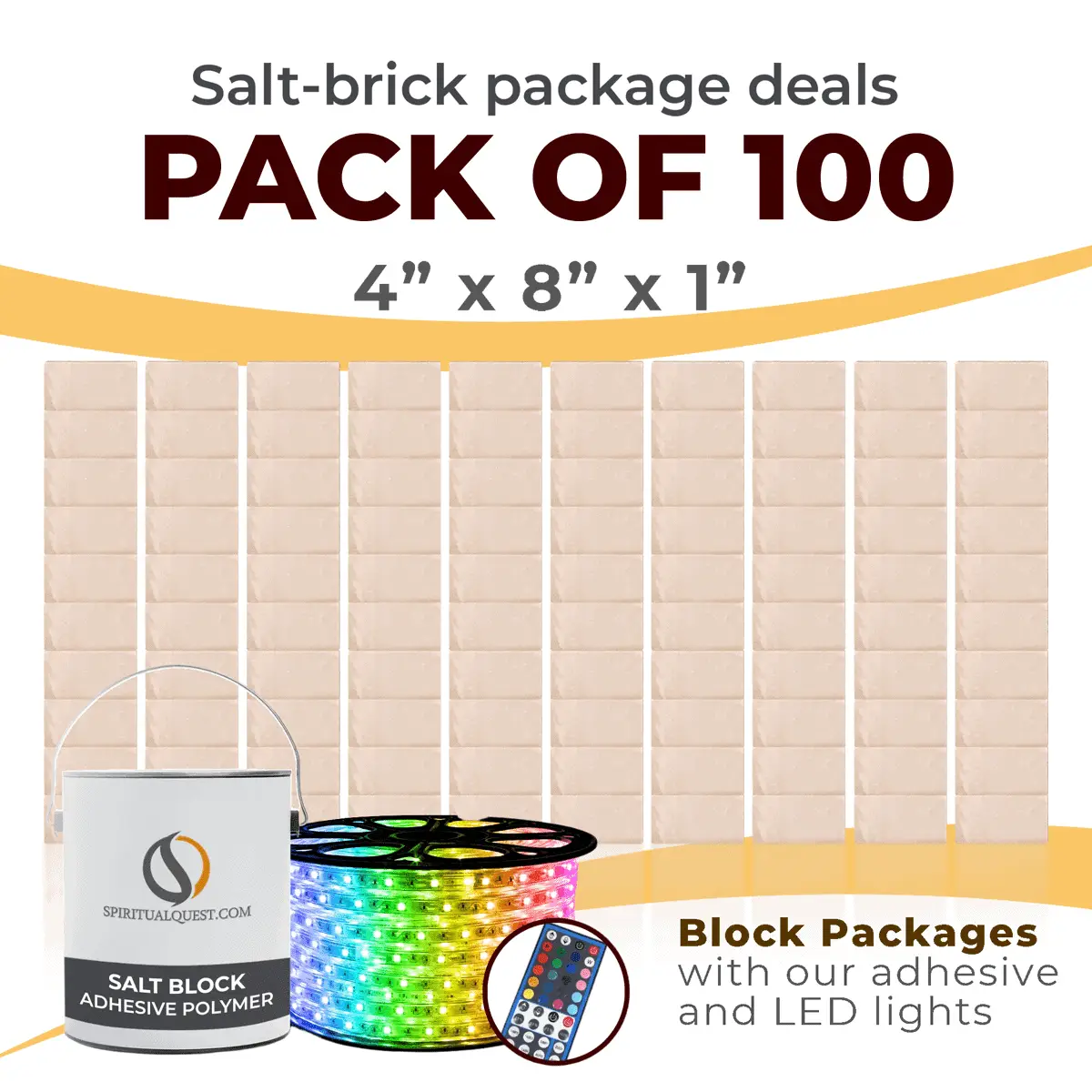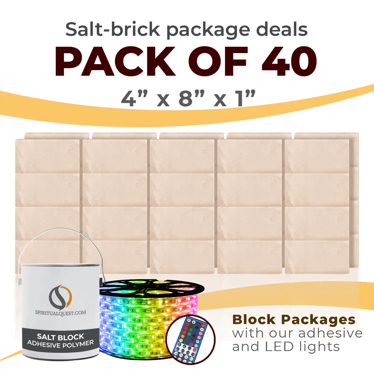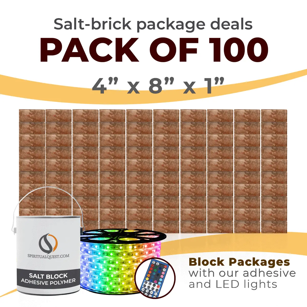 4″ x 8″ x 1″ – 6″ x 8″ x 1″ – 8″ x 12″ x 1.5″ Salt Bricks plus Adhesive and LED Lights