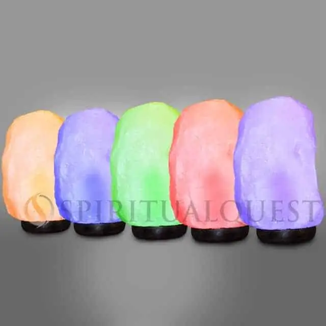 While most Himalayan salt is streaked with orange and red mineral deposits, occasionally our salt miners come across a vein of “albino” salt deep within the Himalayan mountain salt mines. This lack of coloration means that you can control the color of your white salt lamp by using colored bulbs. This is why we include five different colored bulbs so you can vary the color to suit your mood: amber, red, green, blue, and purple.