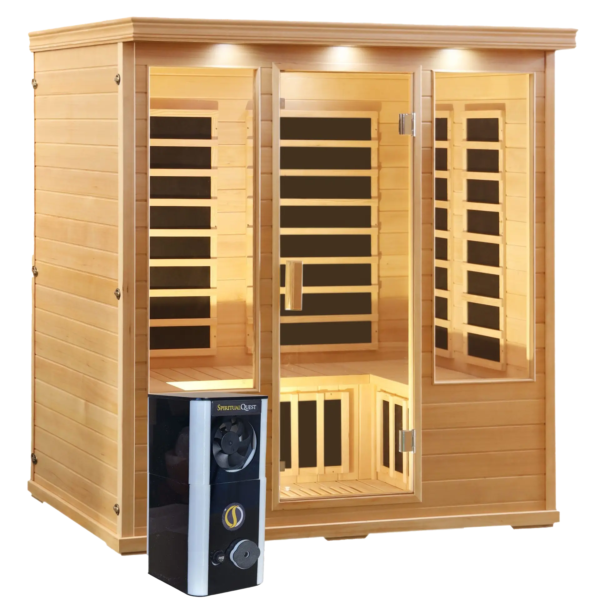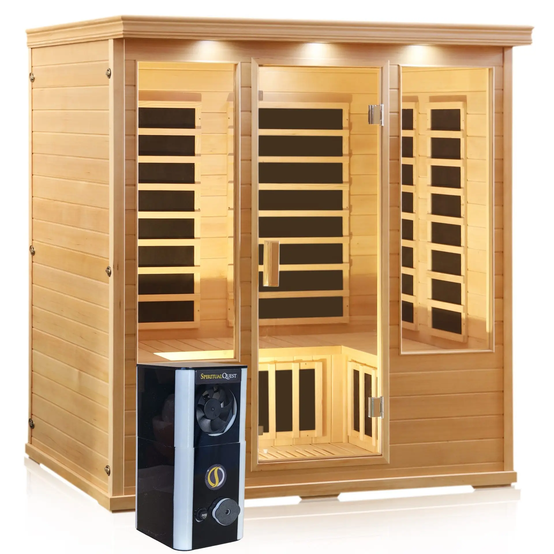• Nine carbon fiber infrared full-spectrum (NIR, MIR, FIR) heating elements-Low EMF in this large salt therapy cabin with infrared