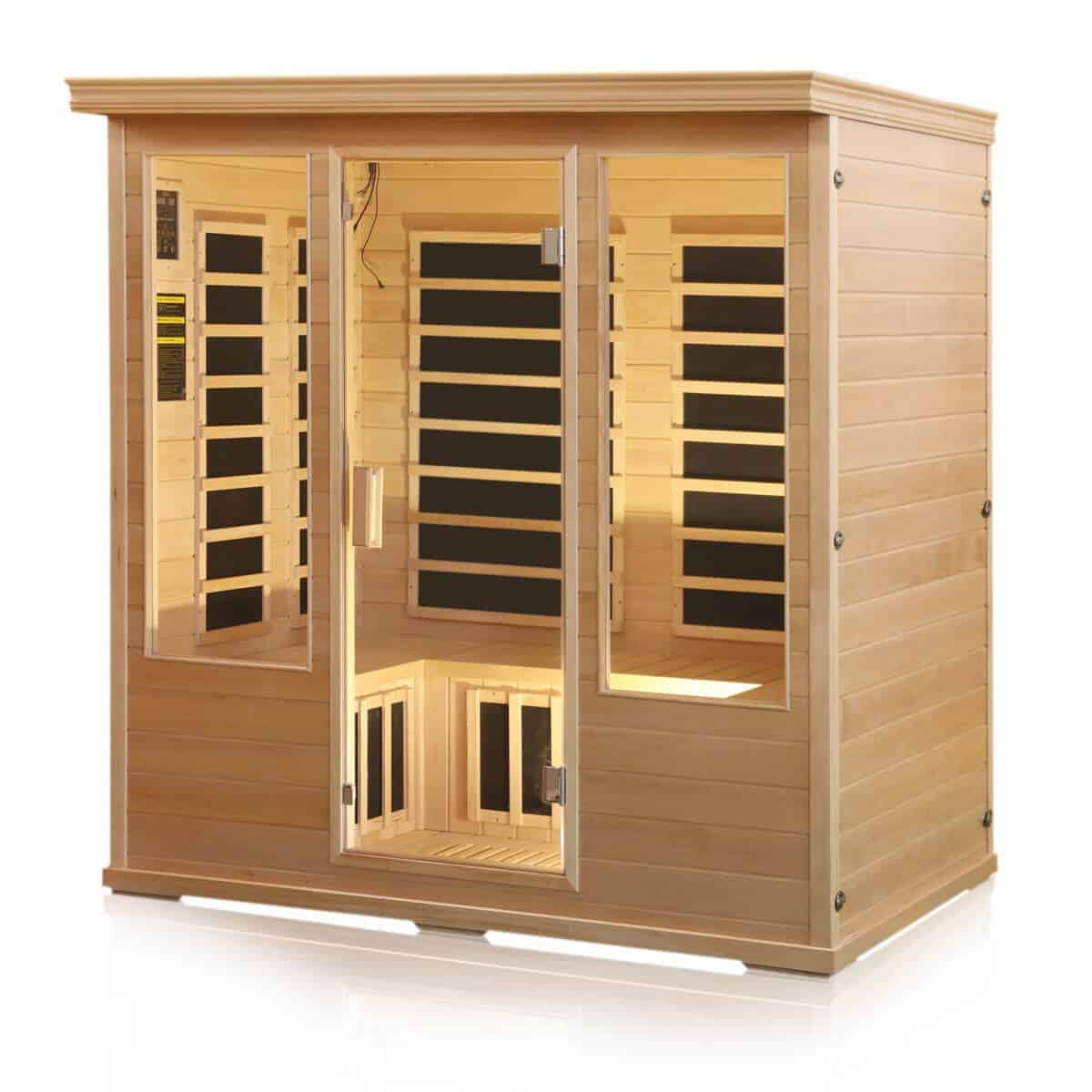 • Up to 140-150 degrees heating with digital heating settings and timer in this 4-person infrared salt room