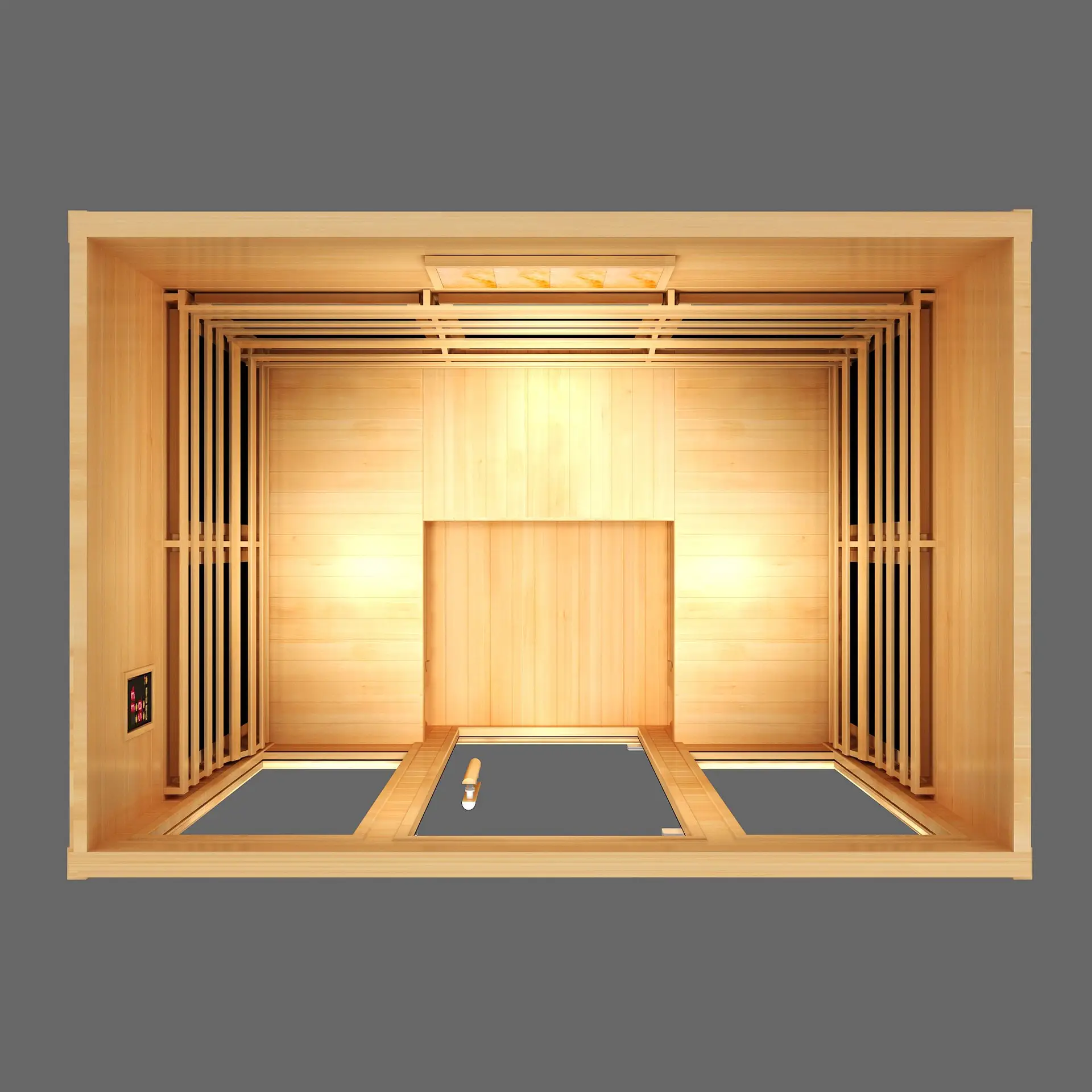 2. Control Panels: Ensuring easy and hassle-free management of all functions and features in this large salt therapy cabin with infrared. Fully covered.